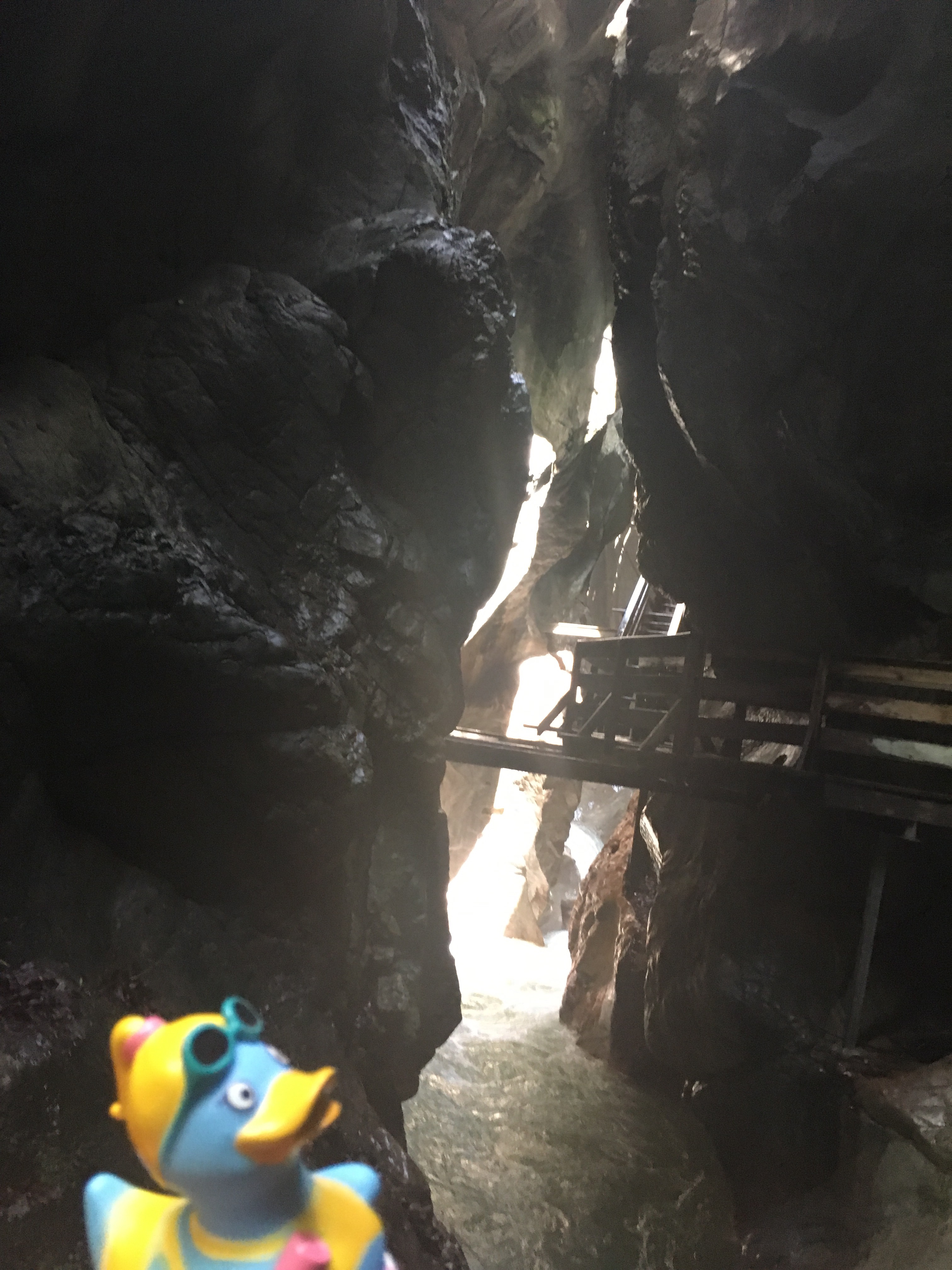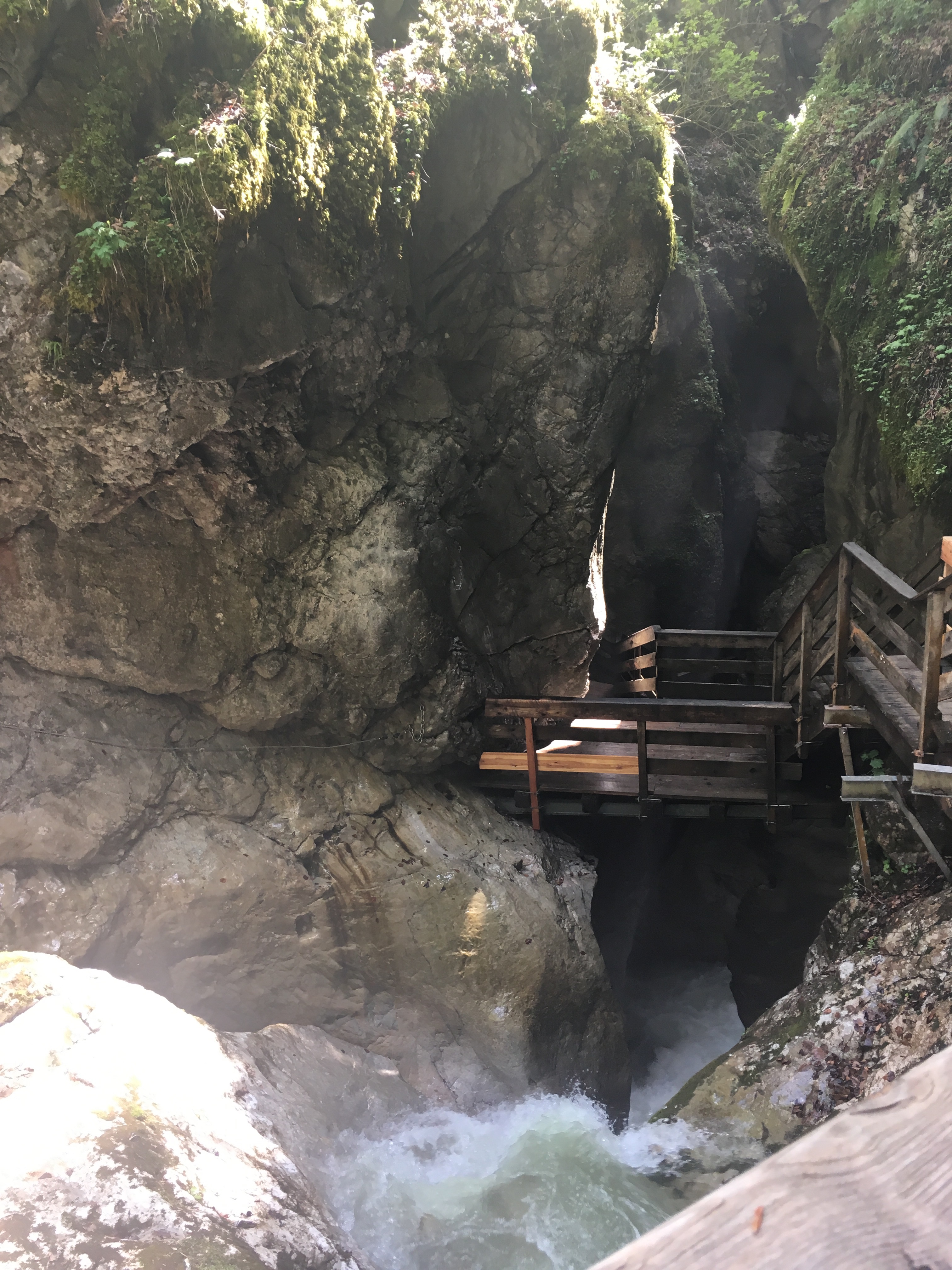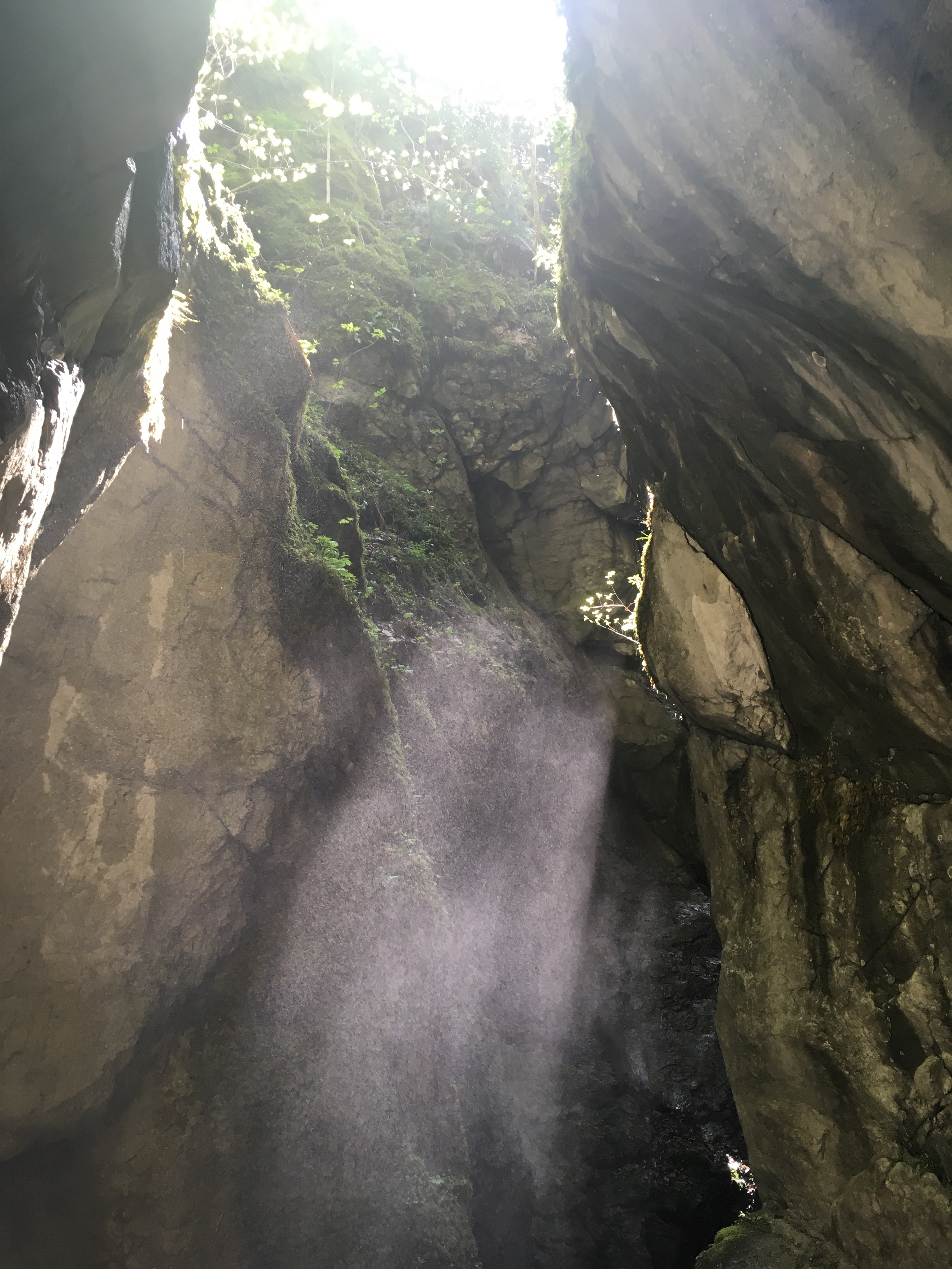 Sicherheit? Oh ja! Die Klamm hat es in sich! Tobende Wasserfälle, eindrucksvolle Kaskaden, enge Schluchten, gewaltige Felsen unter und über dem Besucher. Es soll auch einen Klammgeist geben. Da kann es einen schon mal etwas gruseln….