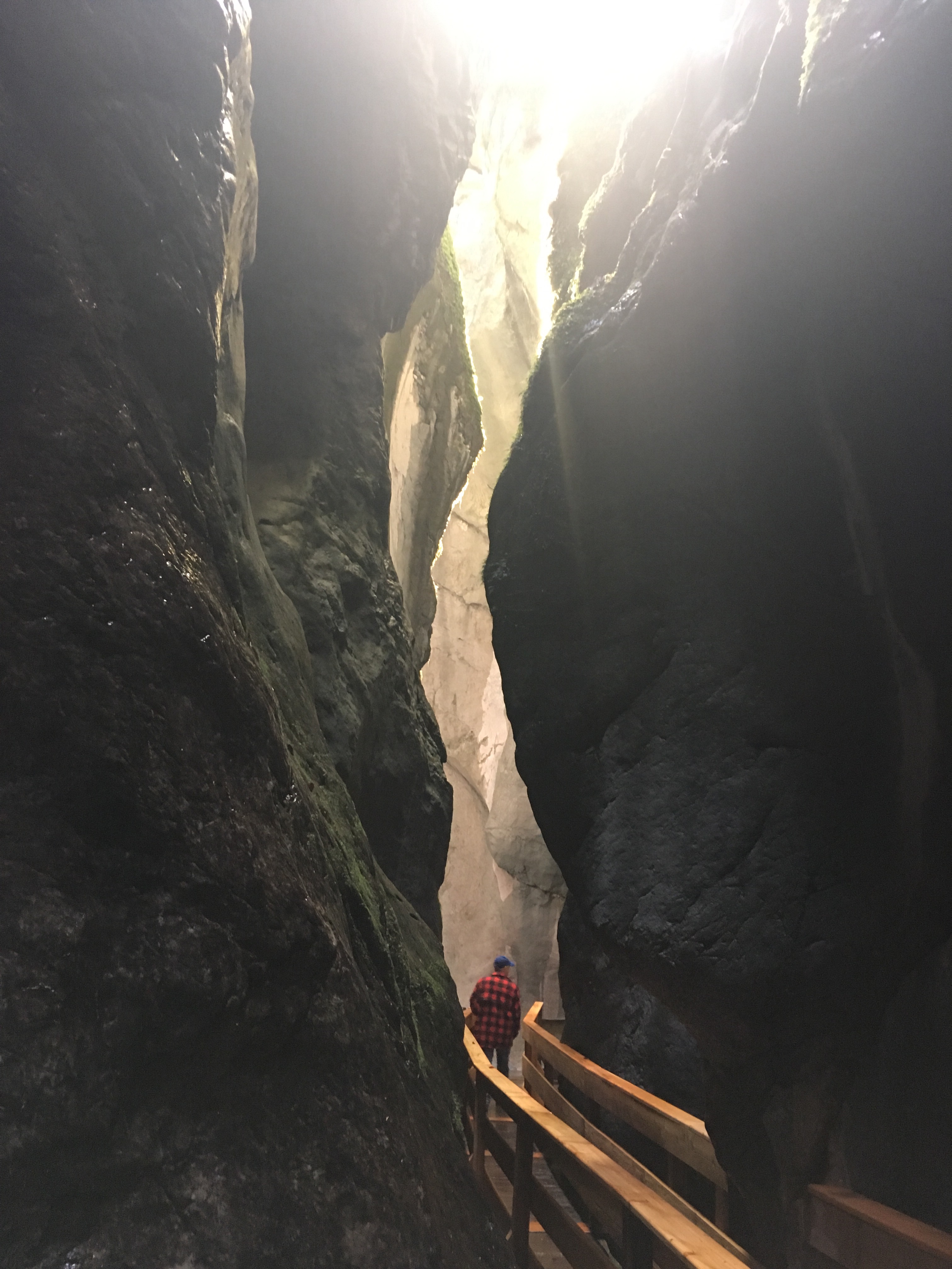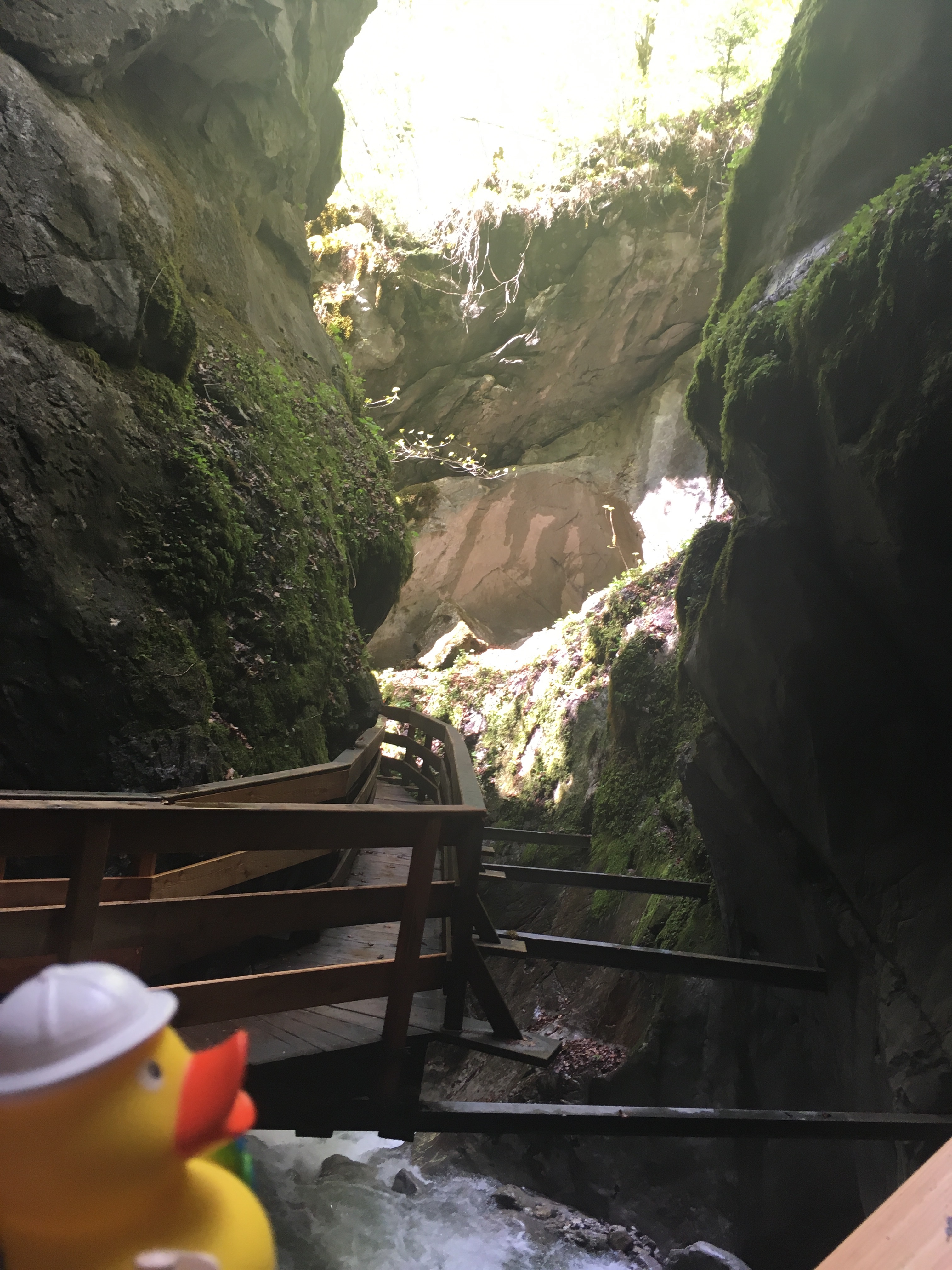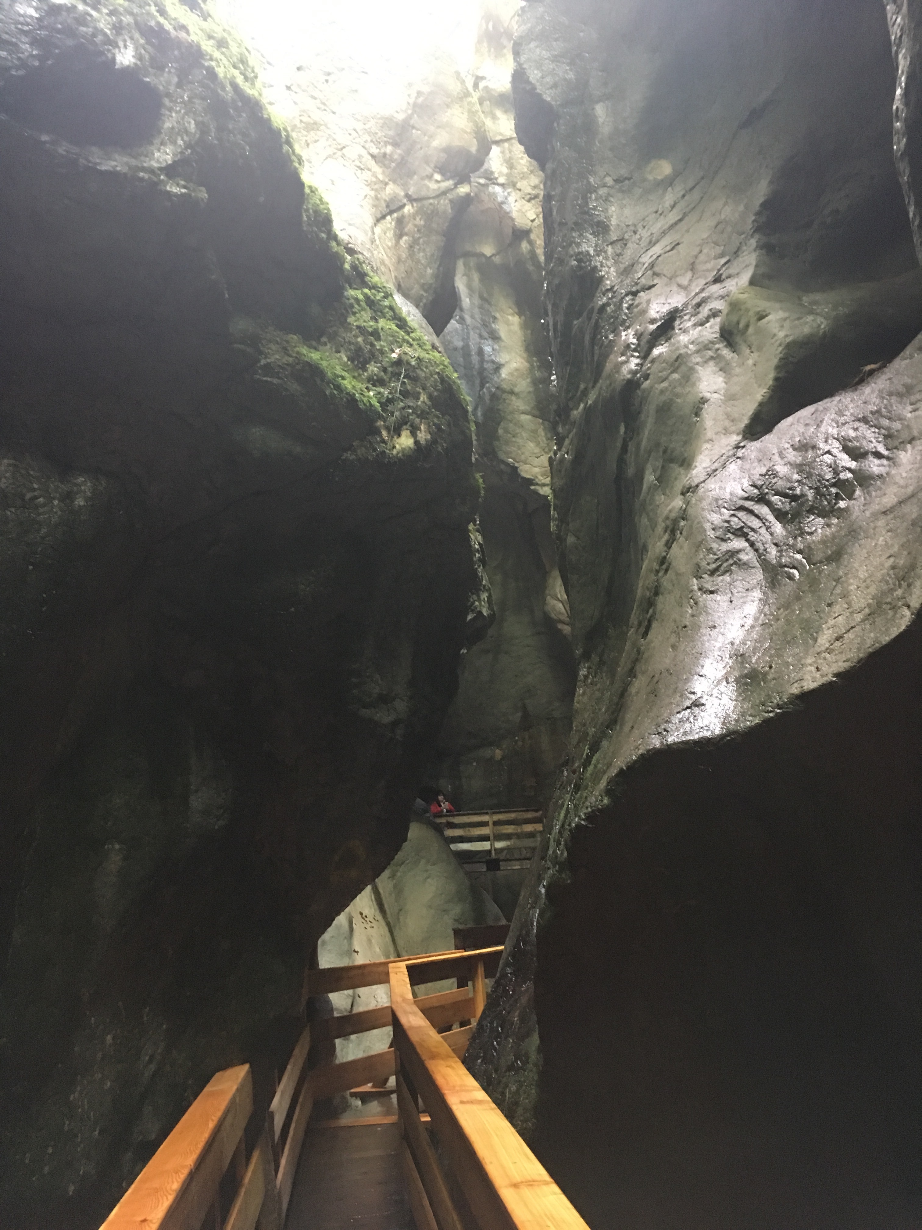 Sicherheit? Oh ja! Die Klamm hat es in sich! Tobende Wasserfälle, eindrucksvolle Kaskaden, enge Schluchten, gewaltige Felsen unter und über dem Besucher. Es soll auch einen Klammgeist geben. Da kann es einen schon mal etwas gruseln….