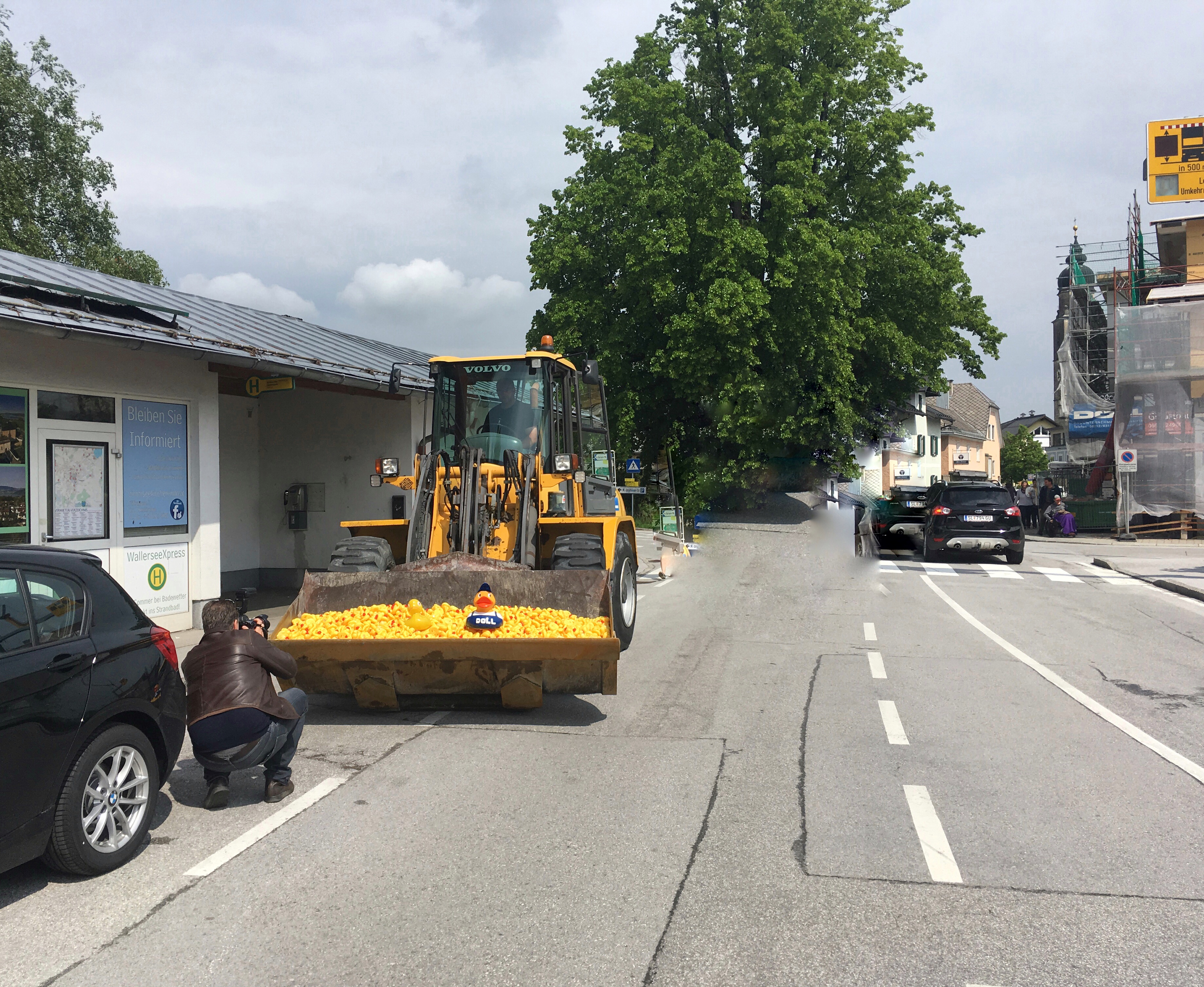 Das Entenrace startet am Stadthafen neben dem Brückenstüberl an der Fischach.