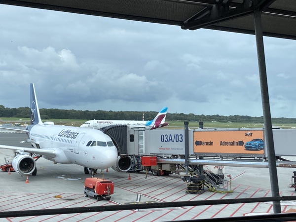 In München waren wir begeistert, denn selbst bei der Sicherheitskontrolle wurde genug Abstand nicht nur durch verbreiterte Anstellzonen, sondern auch durch das aktiv einweisende Personal garantiert. Desinfektionsständer waren gut sichtbar und in regelmäßigen Abständen platziert.