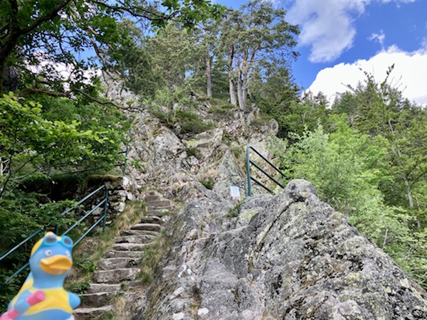 Treppauf geht es über 250 Stufen entlang der Wasserfälle bis zur Klosterruine.