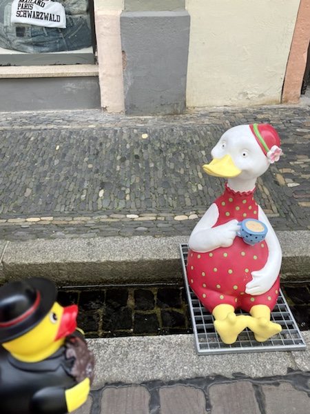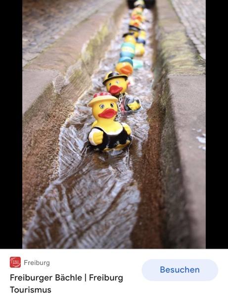 Unsere Suche nach den Bächle Enten bleibt leider erfolglos. Das kultige Fotomotiv vor dem ehemaligen Souvenirladen Hansen scheint mitsamt dem Geschäft das Bächle runter gegangen zu sein. Meine Email Nachfrage dazu an den Tourismusverband ist seit Januar 2022 unbeantwortet und der Tipp aus einer Facebook Gruppe stammte offenbar aus früheren Zeiten.