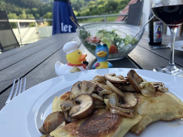 Aber Karel hat schon Maultaschen gebraten und rettet damit den Tag.