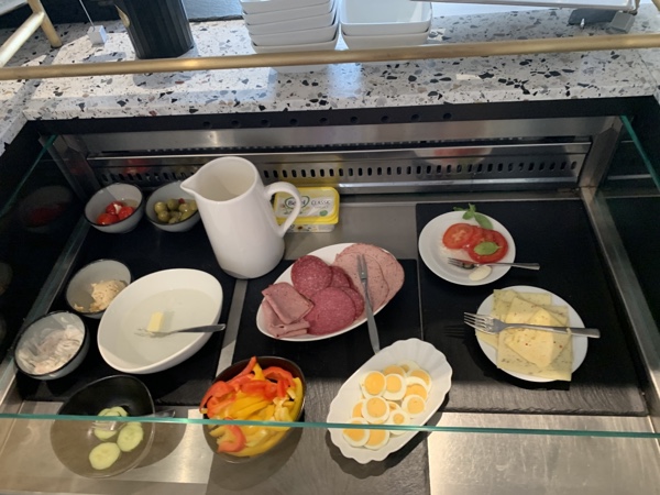 Das Hotel wirbt mit reichhaltigem Frühstücksbuffet, wie sich dann herausstellt, täglich von 6 – 9 Uhr, auch am Wochenende, für die Hartgesottenen.