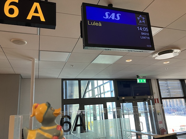 Einer Einladung von Karels Urgroßneffen Hägar* folgend, reisten Susi und die Reise-Enten zunächst mit den gerade nicht streikenden Lufthansapiloten nach Stockholm und von da mit der seit Juli in Insolvenz fliegenden SAS weiter nach Luleå. (Sprich: Luleo)