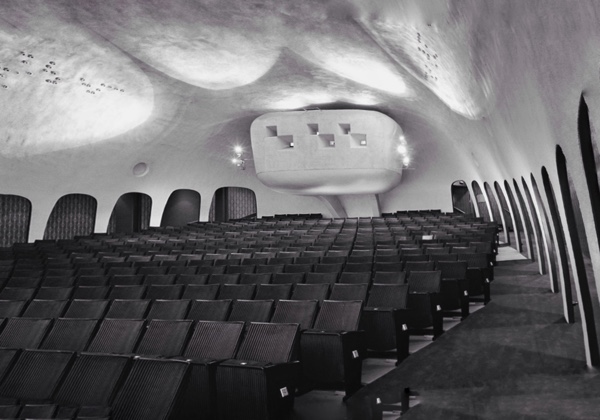 Im Untergeschoß befand sich ein Kino. Es hieß Spegeln und war für die damalige Zeit sehr futuristisch, ja raumschiffartig konzipiert.
