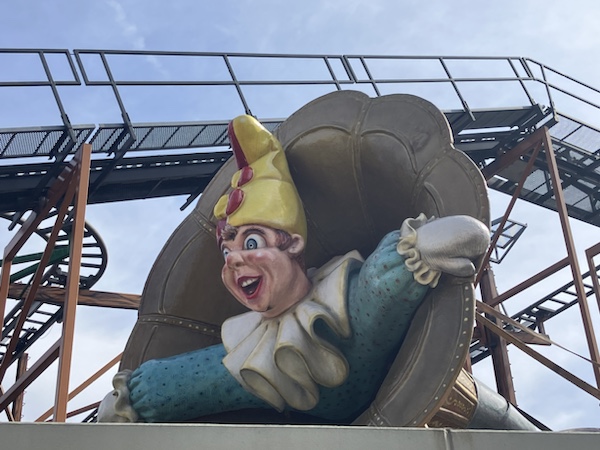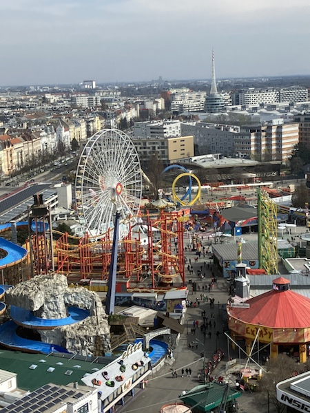 1. Für einen Film dreht eine Zirkusdirektorin und Reiterin 1914, auf einem Pferd sitzend, das auf dem Dach eines Waggons stand (und offenbar stehen blieb) eine Runde mit dem Riesenrad.