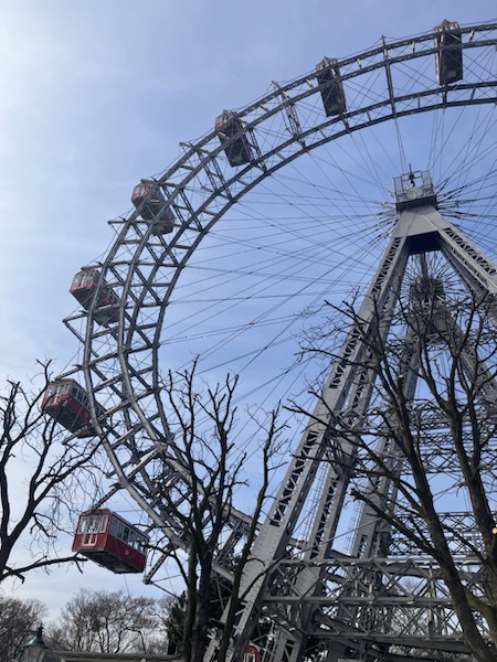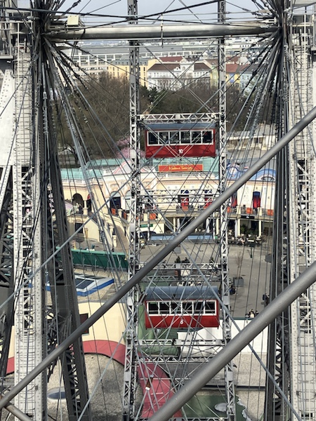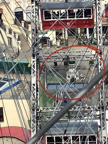 2. Das Riesenrad war des öfteren Filmdrehort, z.B. für James Bond oder „Der dritte Mann“ , aber auch schon Teil einer Werbekampagne einer Konditorei. Diese kreierte die größte Schaumrolle und den größten Krapfen, die ein Extremsportler, angehängt auf dem Dach einer Kabine eine Umrundung lang stemmte.