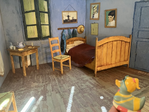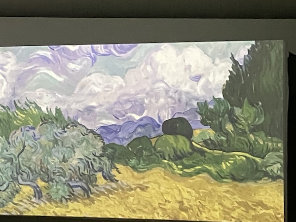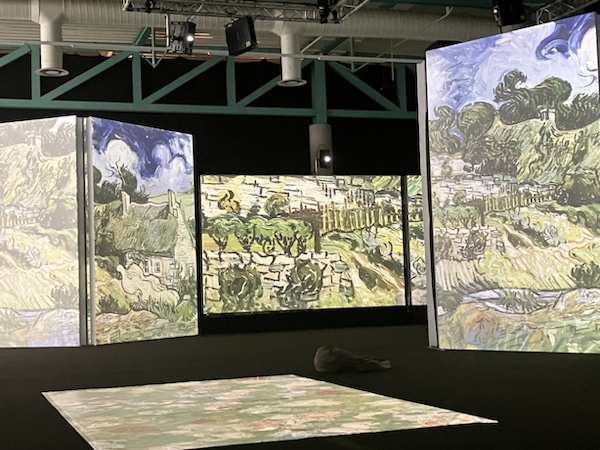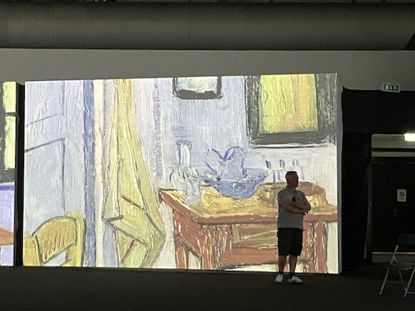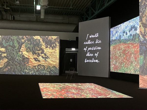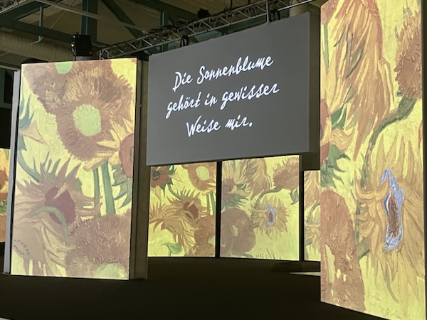 Schwer wie Blei liegt das Schicksal Vincent van Goghs über den mal bunten, mal tristen Bildern, den berühmten Sonnenblumen oder dem Sternenhimmel, die überdimensional groß über die Leinwände huschen . Die Ausstellung ist sehr bewegend, wenn auch mit 25 Euro Eintritt pro Erwachsenem nicht gerade preiswert.