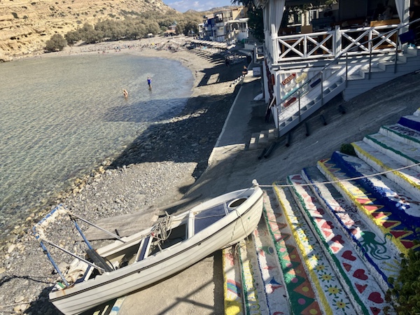 Matala, die Hippiehochburg zur Zeit des Vietnamkriegs, war Zufluchtsort für die Blumenkinder und US- Kriegsdienstverweigerer, die in den Höhlen des Dorfs in Kretas Süden hausten. Höhlen, die den Römern zuvor als Grabstätten gedient hatten. Multi-Use, sozusagen.