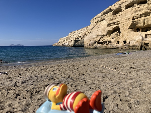 Das libysche Meer, an dem Matala liegt, ist noch etwas wärmer als die Ägäis, der Wind und die Wellen sind sanfter.
