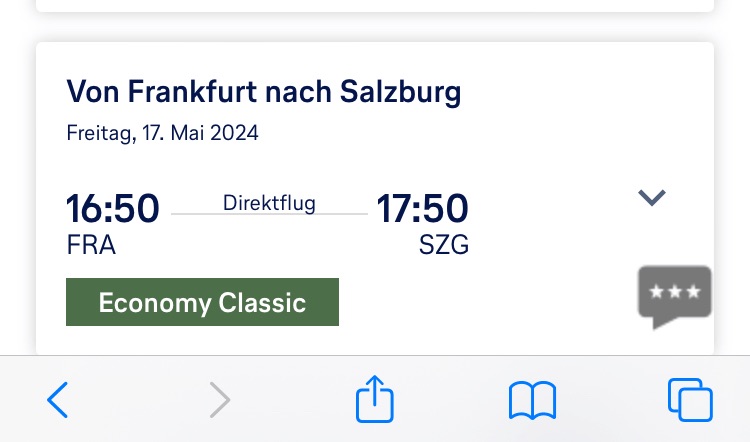 Ich wollte für Mai 2024 Flüge nach San Francisco buchen, ab Salzburg. Es wurden mir über google diverse Flüge via Frankfurt angeboten, mit mehreren Airlines.