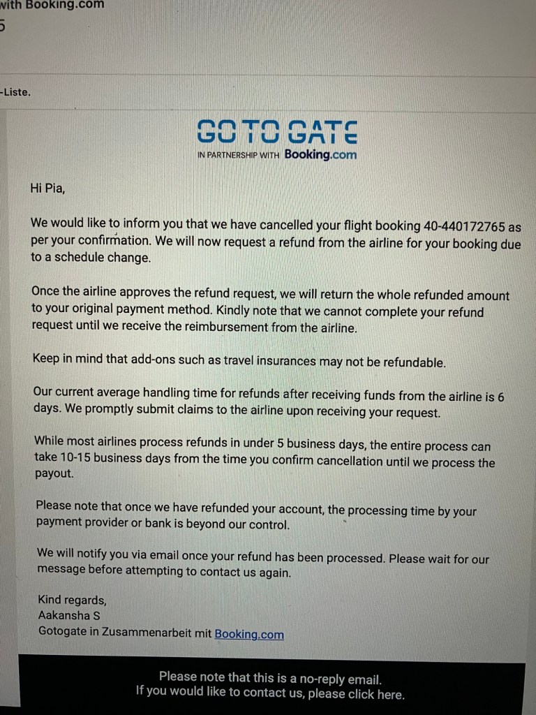 Gotogate schrieb auch noch, dass es dauern wird, bis ich das Geld zurück bekomme, weil sie es erst bei der Airline beantragen und zurückfordern müssen.