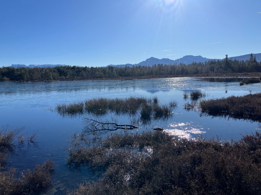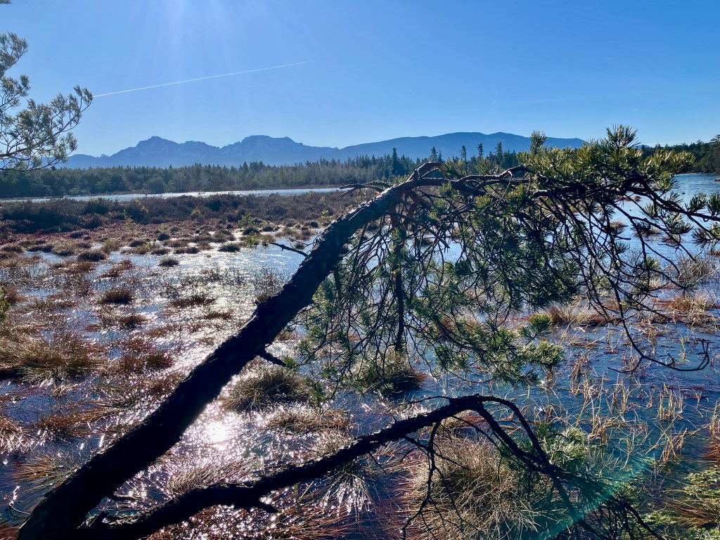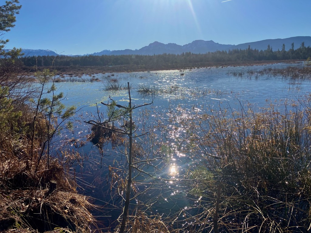 Ob man den Moorsee komplett umrunden kann, haben wir nicht ausprobiert. Das wäre dann wohl eine längere Wanderung geworden.
