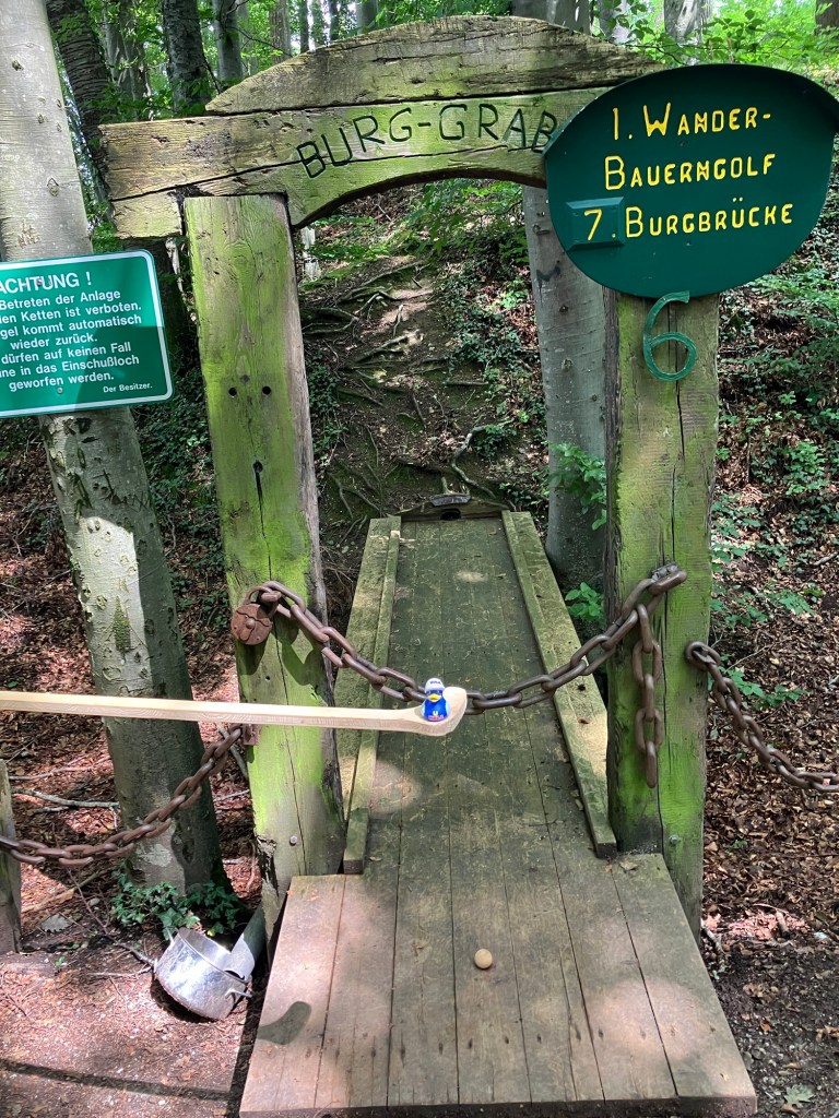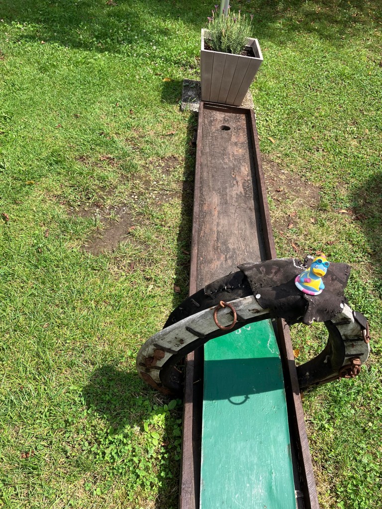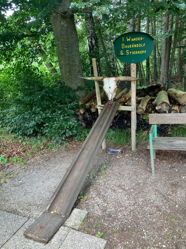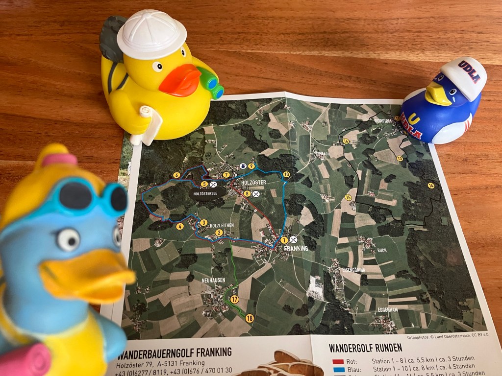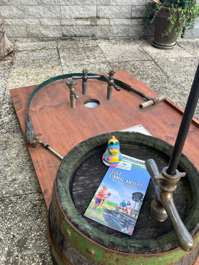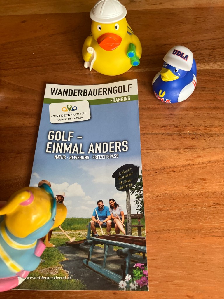 „Ein toller Spaß für die ganze Entenfamilie, schöne Wanderwege, nur bedingt Kinderwagen tauglich (mit Offroad Bereifung könnte es eventuell gehen), nicht barrierefrei. So bringt man Wandern und Golfen unter einen Hut und genießt die Natur. Ein paar Kuriositäten unterwegs amüsieren auch. Daher: Daumen hoch für Wanderbauerngolf!“