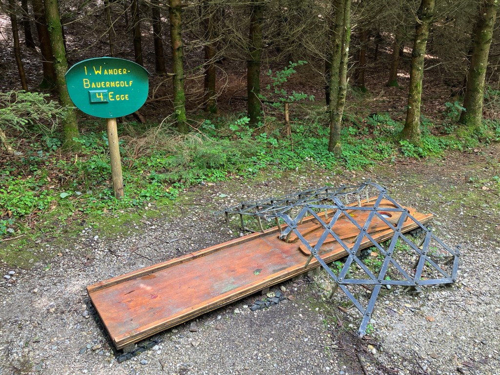 Die Stationen sind originell mit bäuerlichen Geräten oder Bezug zur Landwirtschaft gestaltet und erinnern an Minigolf. So werden sie auch bespielt.