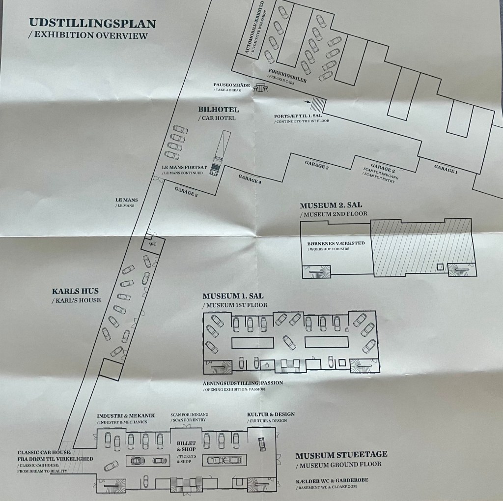 Es ist kein Haus, es ist ein 25.000 qm großes Anwesen, das der Gründer K.W. Bruun aus einer ehemaligen landwirtschaftlichen Schule, einem heruntergekommenen alten Gebäude, strukturerhaltend umbaute, mehrere Nebengebäude (Garagen) hinzufügte und darin – nein, keine Ausstellung – sondern eher ein atemberaubendes Erlebnisuniversum mit unzähligen Oldtimern schuf.