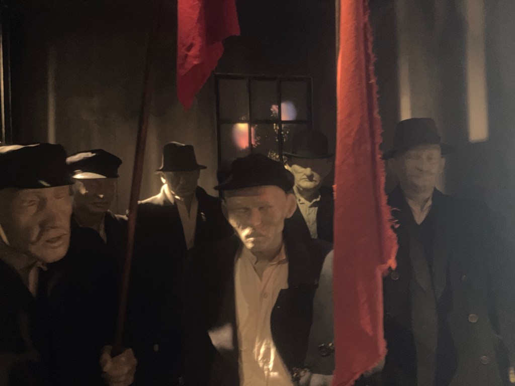 Auf drei Stockwerken erstreckt sich die Ausstellung, die vom Beginn der Arbeiterbewegung über die 50-er Jahre bis Ende des 20. Jahrhunderts erzählt, aus stark rot gefärbter Perspektive, so mein Eindruck.