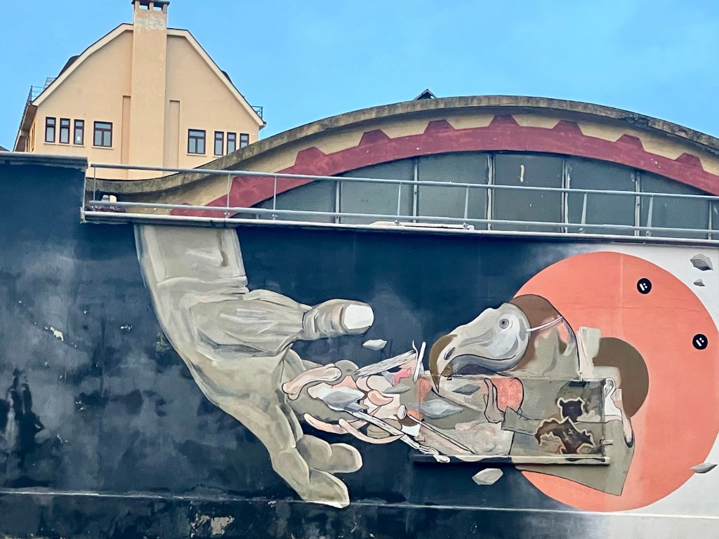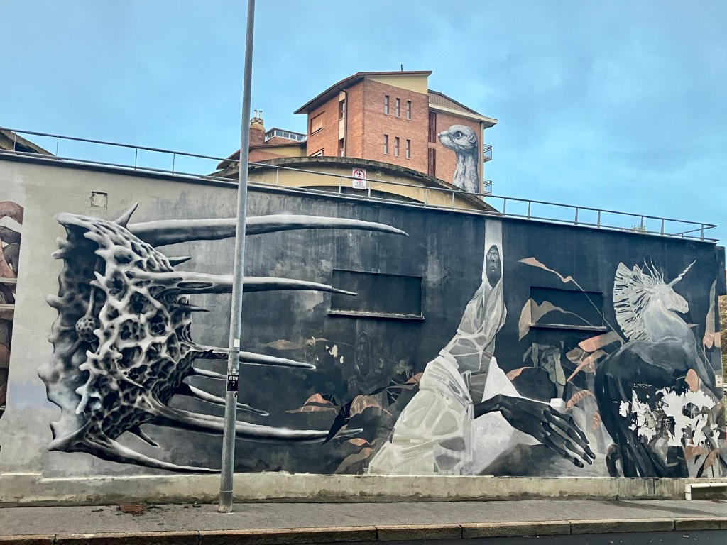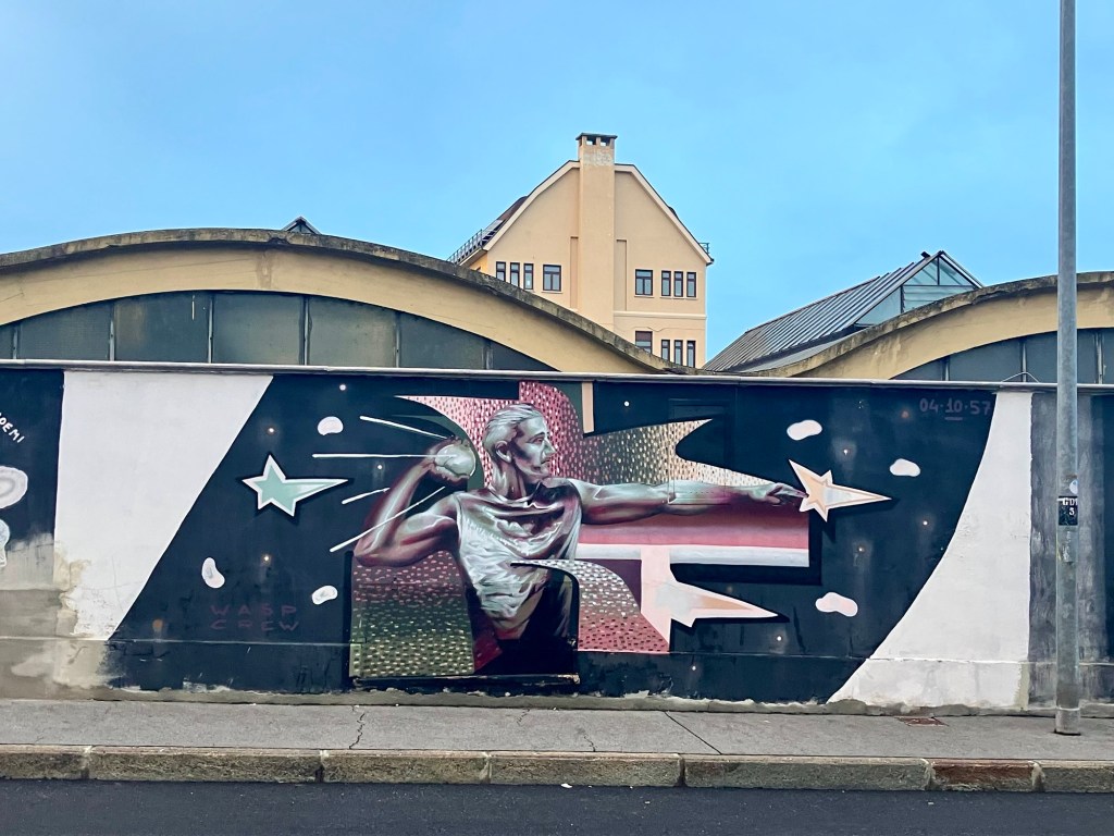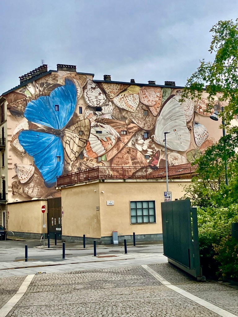 Turin ist faszinierend und bunt. Selbst an einer Fassade neben dem RAI, dem nationalen Rundfunk- und Fernsehsender, entdeckten wir ein Mural.