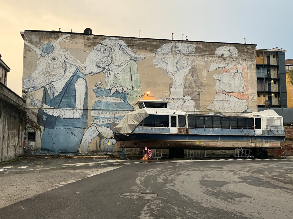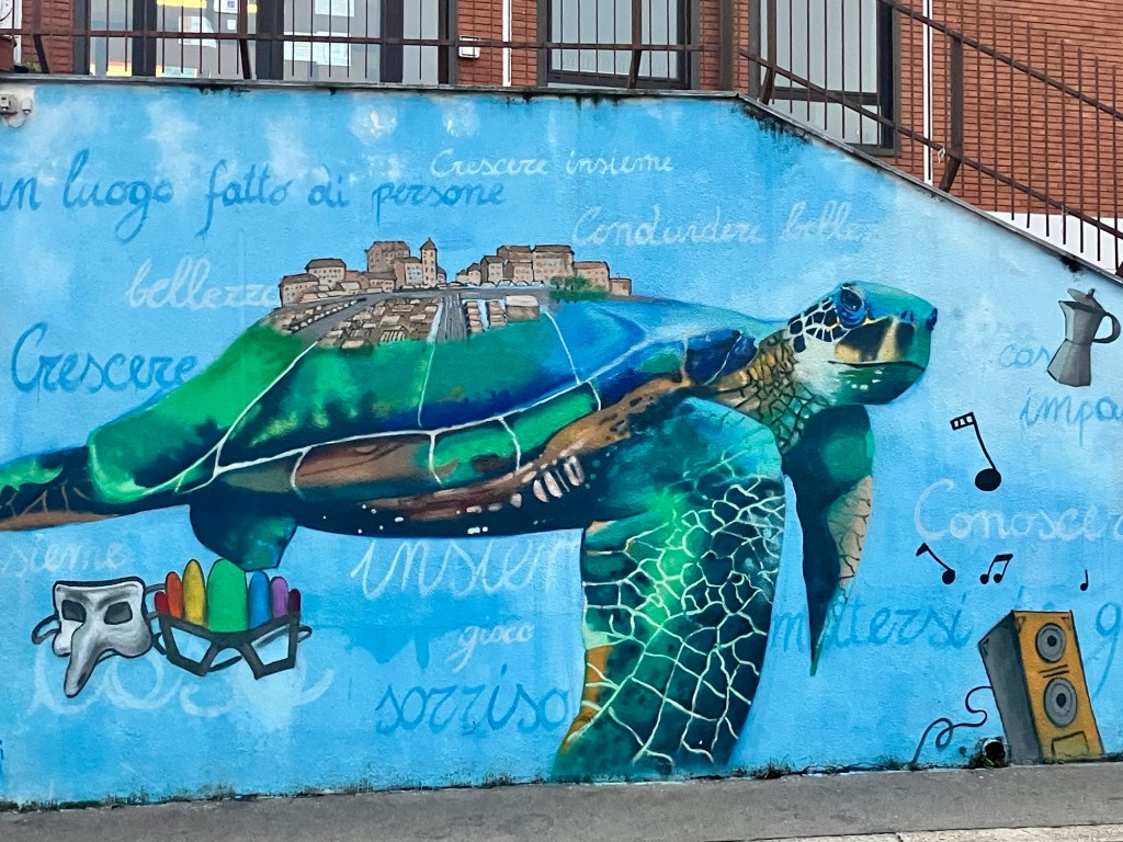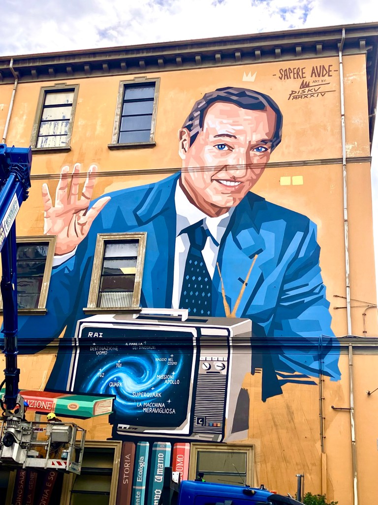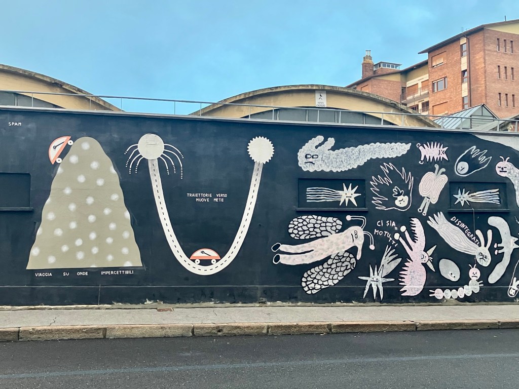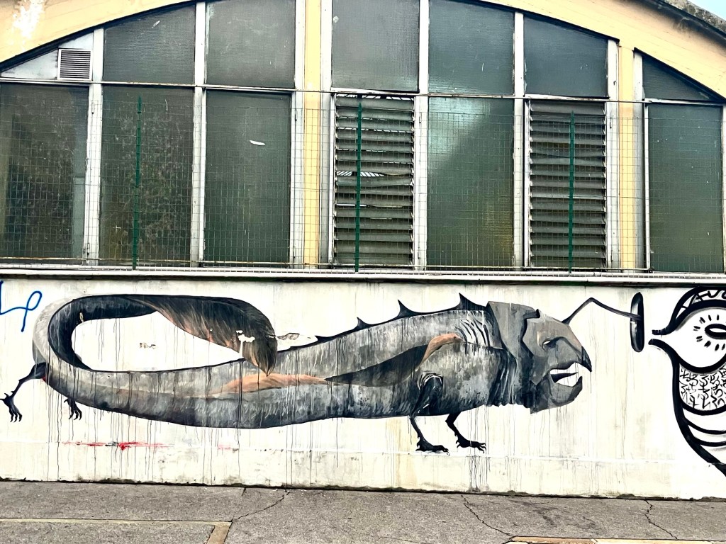 Turin ist faszinierend und bunt. Selbst an einer Fassade neben dem RAI, dem nationalen Rundfunk- und Fernsehsender, entdeckten wir ein Mural.