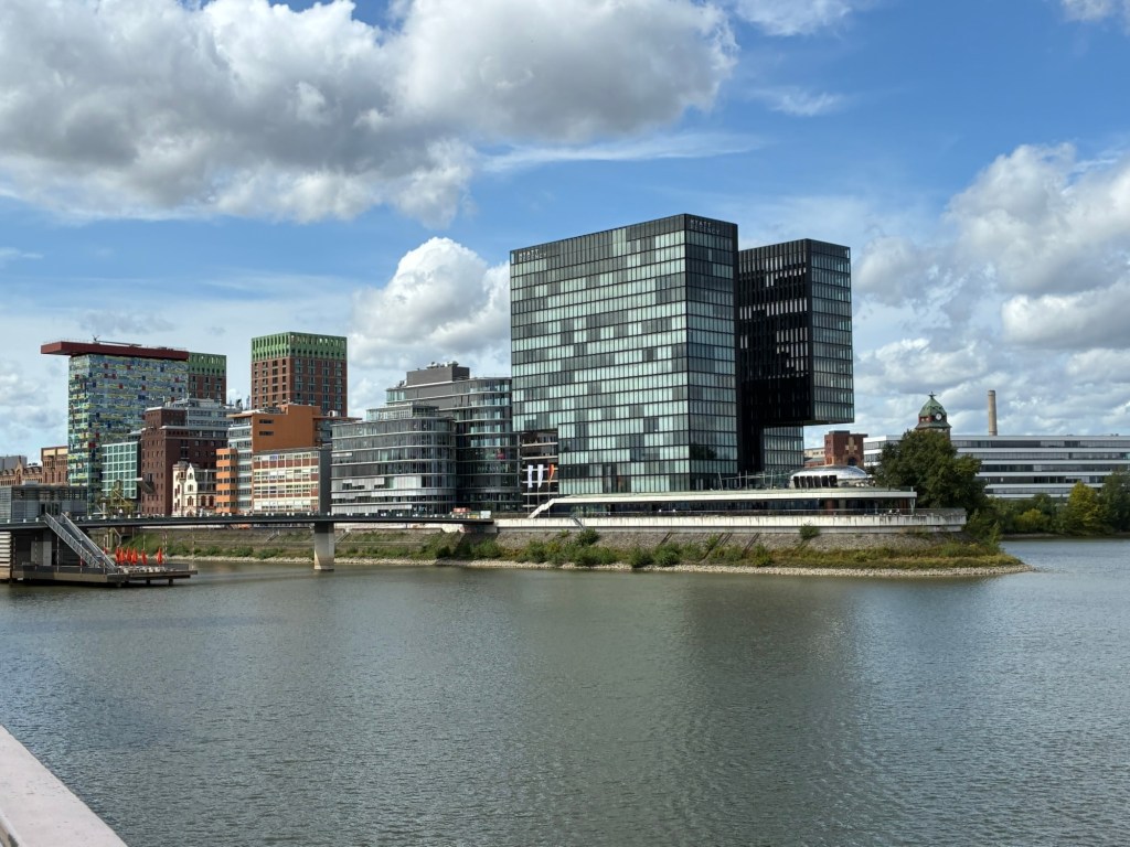 Danach ging’s weiter in den Medienhafen – und der Kontrast hätte kaum größer sein können. Früher Industriehafen, heute ein Hotspot für Kreative, Berater und Fotografen.