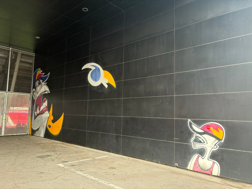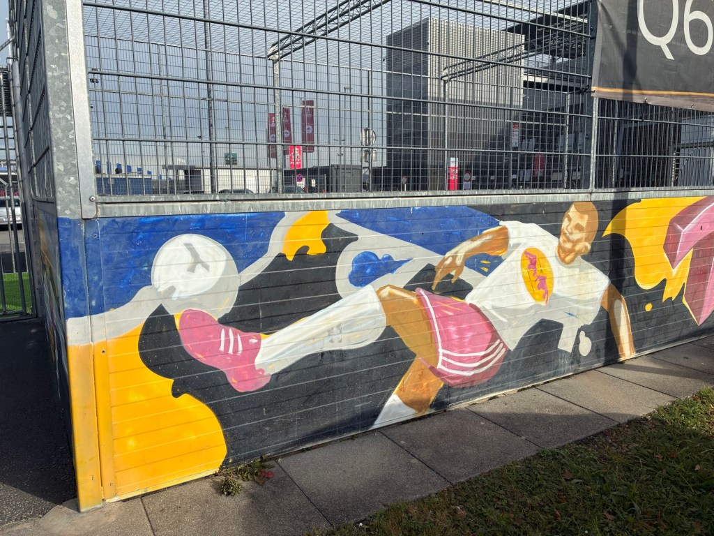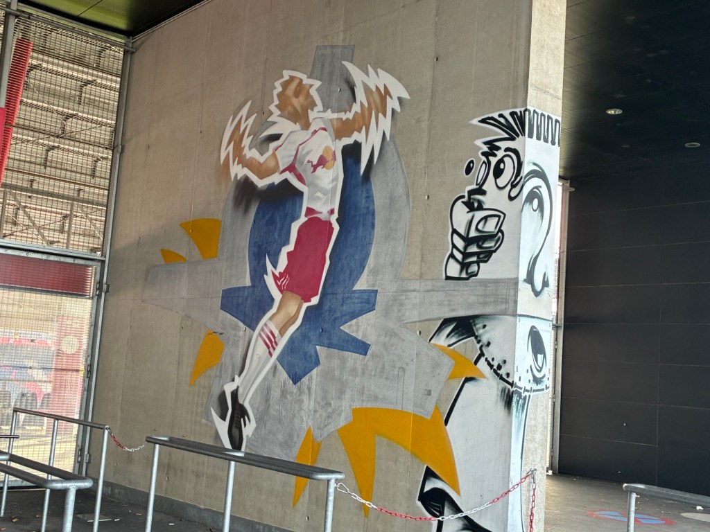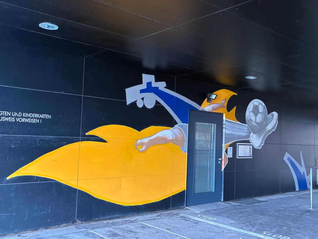 Vom Zentrum aus ist man mit dem Bus schnell da, wir sind direkt mit dem Auto hingefahren. Einmal ums Stadion herum, und die ersten bunten Wände waren im Kasten.
