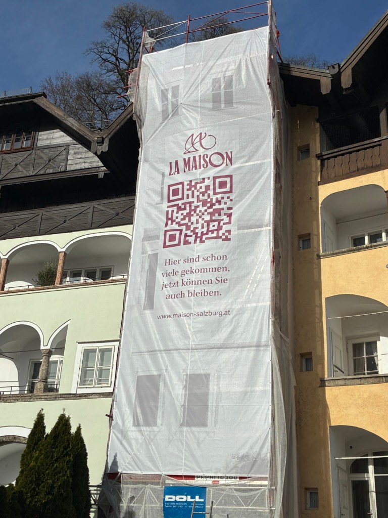 Weiter am Kai zurück zur Staatsbrücke. Dort wird gerade das älteste Bordell der Stadt zu einem Hotel umgebaut. Salzburg wäre nicht Salzburg, ohne Humor: