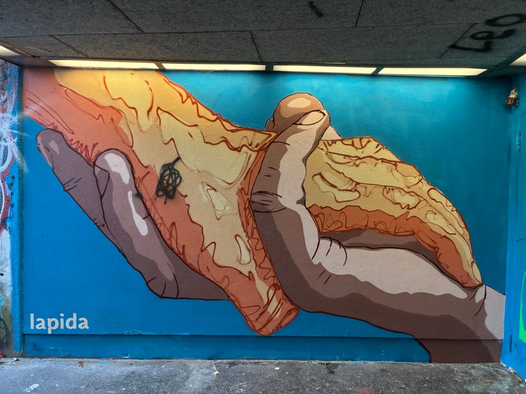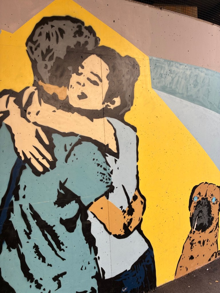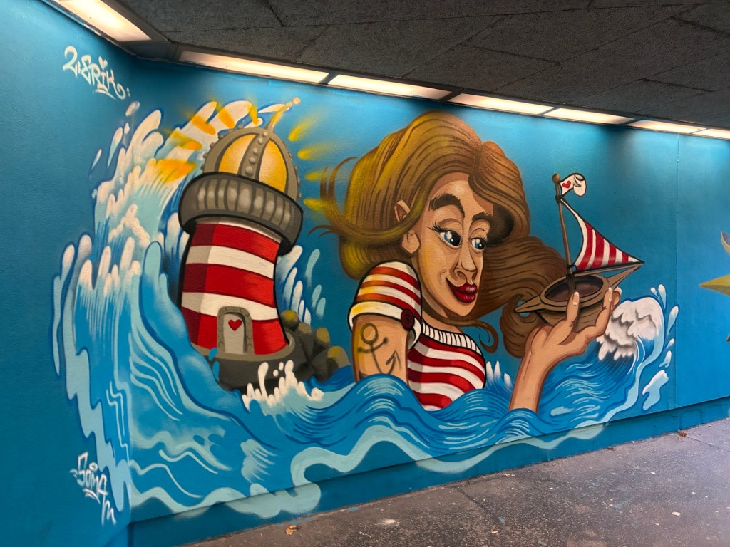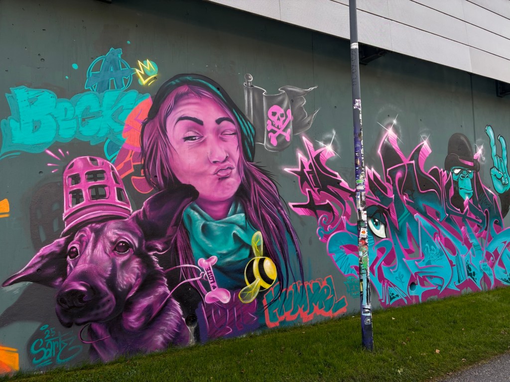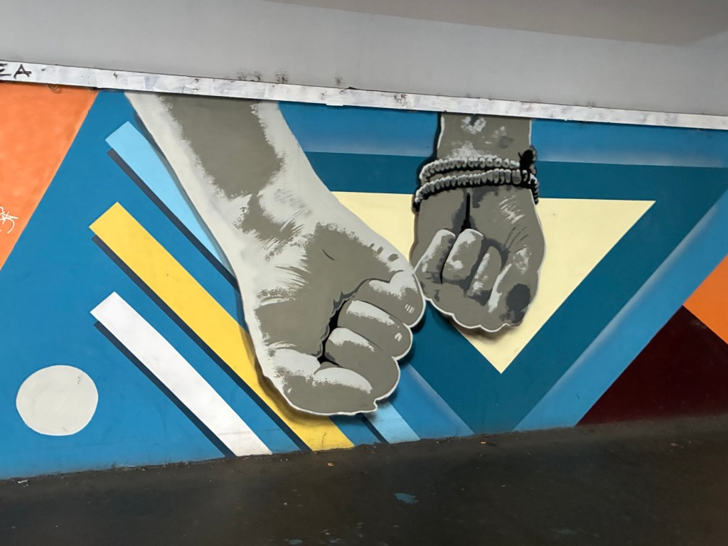 Hier findet man das bekannte Mural von Jana & JS – und zwei kleinere: