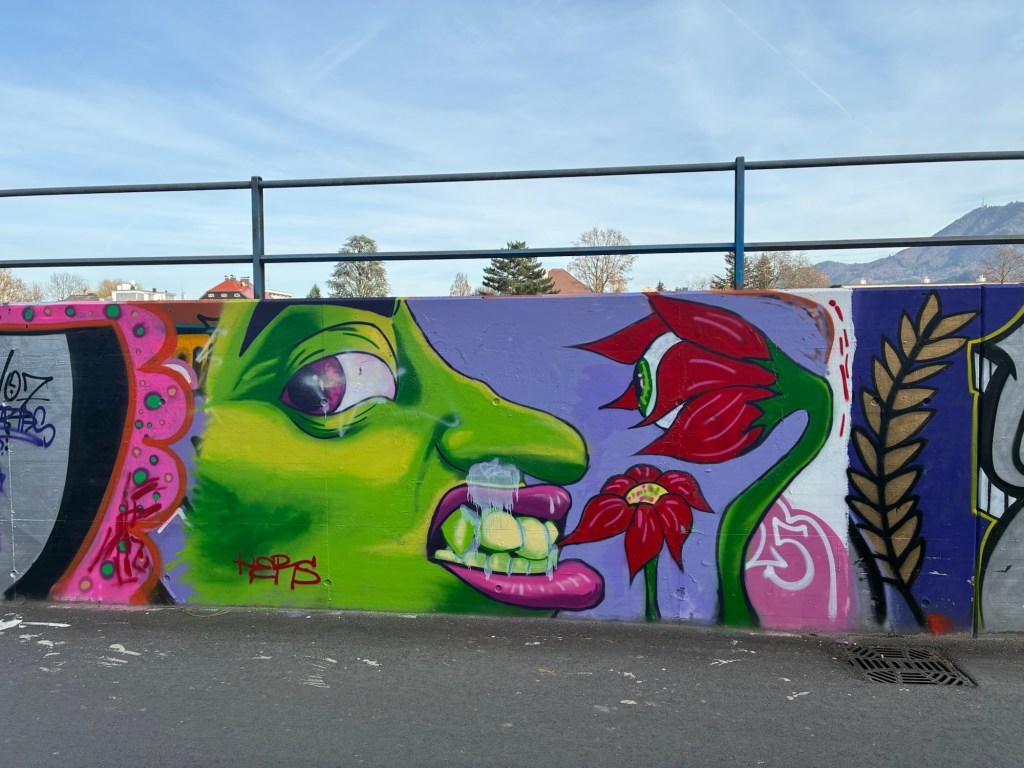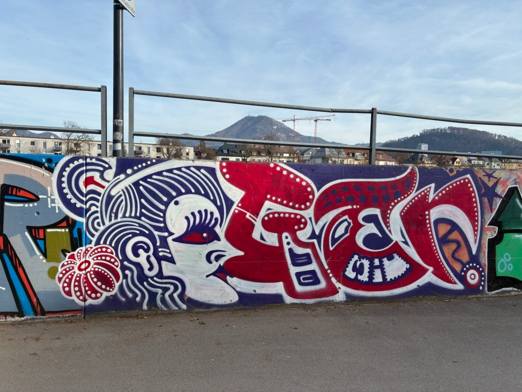 Großflächige Streetart, mutig, farbig, nicht unbedingt „Salzburg-typisch“ – und genau deshalb spannend.