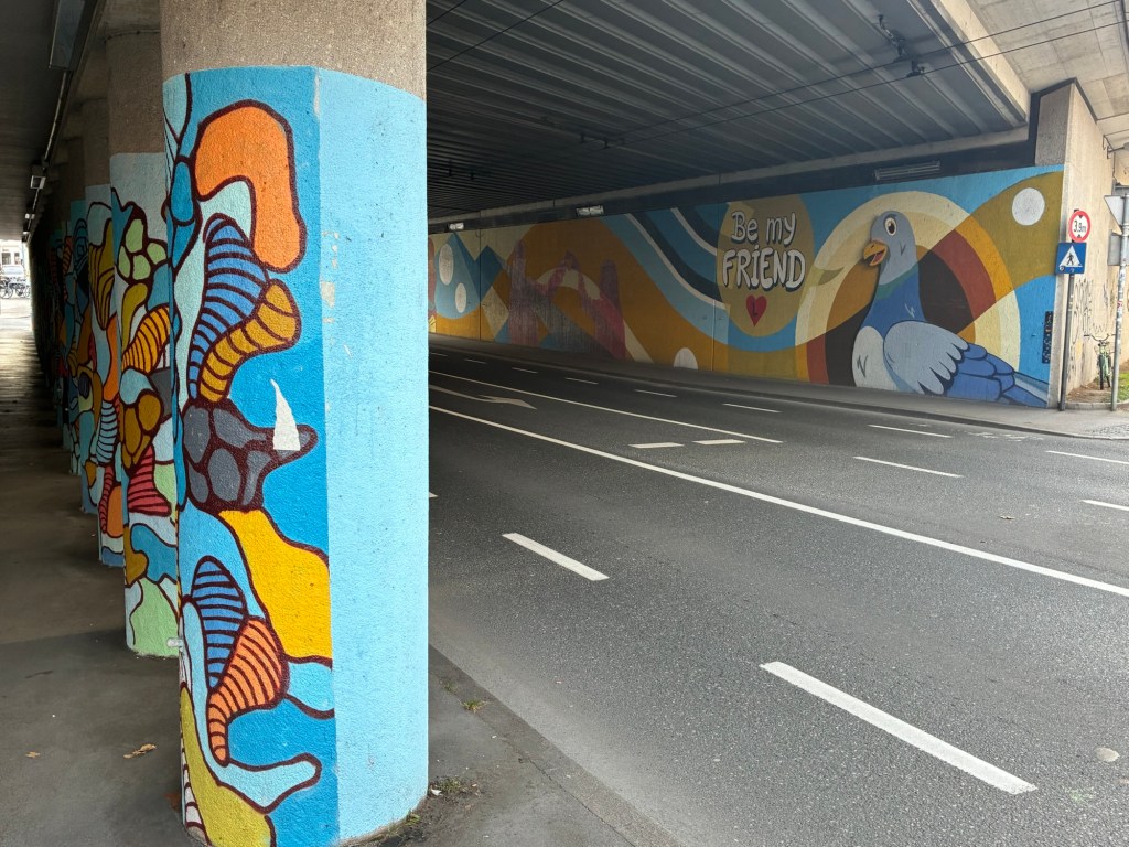 In der Fußgängerunterführung an der Staatsbrücke Richtung Altstadt und rund um die Gaswerkgasse wird’s bunt.