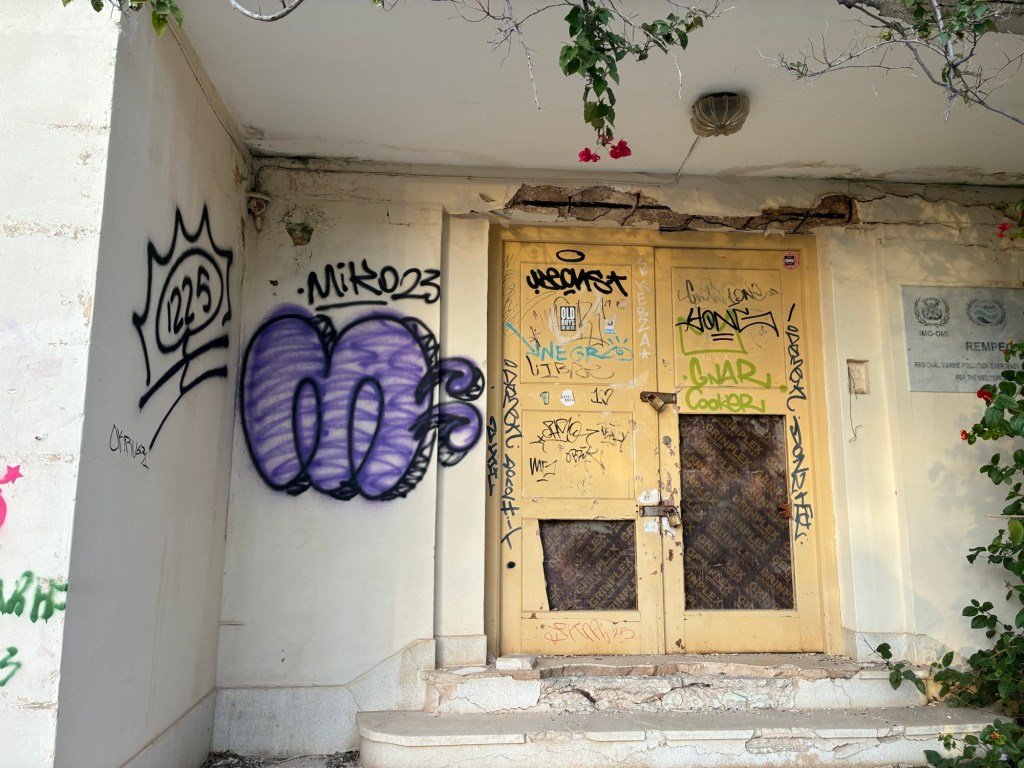 Oberhalb davon fanden wir andere Gebäude. Mit vergitterten Fenstern im ersten Stock. Aber ebenso desolat und verlassen.